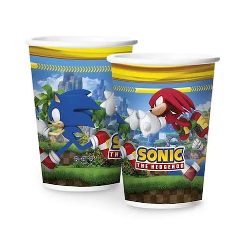 Copo Papel 180ml Sonic C/8 Regina. Do jogo para as telas do cinema, o famoso e veloz ouriço azul. Embarque nas aventuras cheias de velocidade e diversão com Sonic! Materiais produzidos com uma boa qualidade e cores impactantes, proporcione uma experiência única para seus convidados ao usar esses lindos copos.