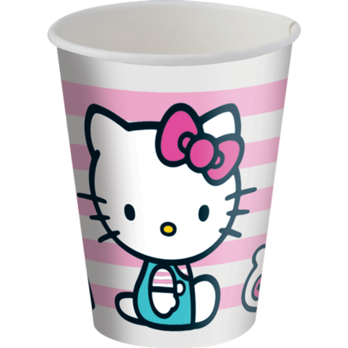 Copo papel 200ML Hello Kitty C/8 Festcolor. Sua aparência fofa e uma personalidade cheia de estilo, encantam pessoas de todas as idades pelo mundo. Conhecida por seu laço rosa, sua expressão suave e sorridente, Hello Kitty, o tema que vai dar um toque de doçura e magia para sua festa! Materiais produzidos com uma boa qualidade e cores impactantes, proporcione uma experiência única para os seus convidados de usar esses lindos copos.