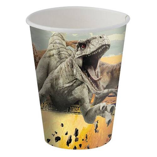 Copo Papel 200ml Jurassic World C/8 Festcolor. Prepare-se para embarcar em uma aventura radical, todos os tipos de dinossauros na sua festa! Seja um verdadeiro explorador de Jurassic World e faça da sua comemoração um parque com esses pré-históricos. Materiais produzidos com uma boa qualidade e cores impactantes, proporcione uma experiência única para os seus convidados de usar esses lindos copos.