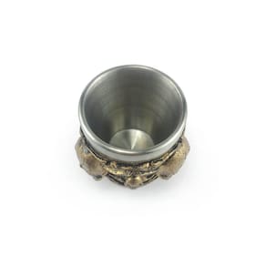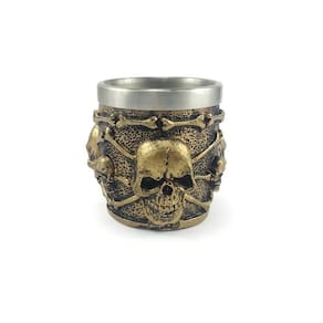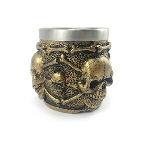 Copo Shot 6 Caveiras, lindo copo com seu interior em aço inox e exterior em resina, confeccionado de modo semi-artesanal, ideal pra quem gosta de tomar um shot com família e amigos, pode ser usado como decoração por conta do fino acabamento e é uma ótima opção para presentear familiares e amigos.