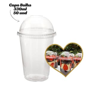 Copo Plastico Transparentes de Doce Com Furo na Tampa 330 Ml