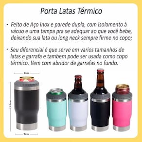 Mantém frio por 4 horas. Mantém quente por 1 hora. Mantém com gelo por mais de 12 horas. Parede dupla para isolamento térmico Isolamento a vácuo Fabricado em aço inoxidável Produto empilhável Encaixa nos porta-copos dos carros Adaptador para latas e longnecks