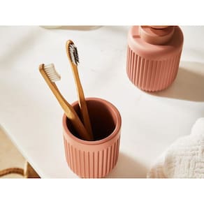 Copo porta escova de dentes maquiagem multiuso em cimento Um ambiente tão importante para o momento do autocuidado também merece um carinho especial