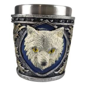Com capacidade para 30ml, este copo apresenta a imagem emblemática do Lobo Branco em 3D, adicionando um toque de autenticidade à sua coleção de itens de Game of Thrones. Com 7cm de altura e 7cm de largura, é compacto o suficiente para caber facilmente na palma da sua mão.