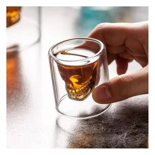 Copo Shot na dose certa para sua bebida Crie efeitos incríveis com bebidas coloridas. Usual e decorativo, é um presente surpreendente e muito criativo. Faça a diferença em sua casa, bar ou festa. O copo Skull tem sua parte interna no formato de uma caveira.