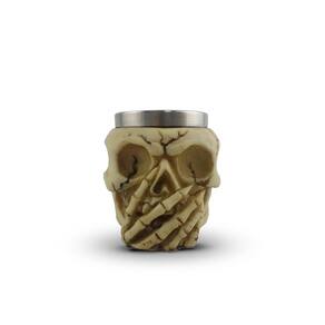 O Copo Shot Dose Em Aço Inox Resina Modelo Caveira Muda é perfeito para os amantes de bebidas destiladas que procuram uma opção decorativa e colecionável. Com um design único de caveira em resina e interior em aço inoxidável, esse copo shot é resistente e possui um excelente acabamento.