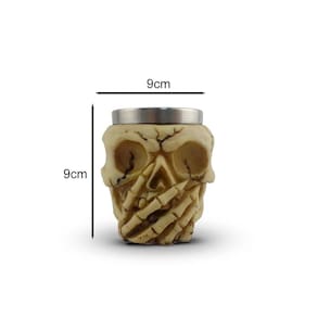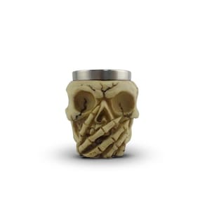 Além de sua beleza estética, o Copo Shot Dose Em Aço Inox Resina Modelo Caveira Muda é altamente funcional. O material em aço inoxidável garante durabilidade e resistência, enquanto a resina proporciona um toque de estilo e originalidade.