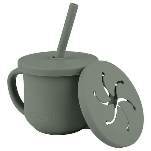 Copo Infantil 2 em 1 Infanti Com Canudo de Silicone, Tampa para Snacks e Livre de BPA