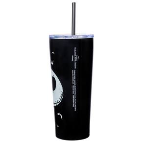 Silver Buffalo Disney Tim Burton's Nightmare Before Christmas Jack Skellington Copo de aço inoxidável de parede dupla "Seriously Spooky" com palha, 650 ml