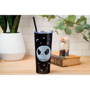 - Copo GHOULISH TUMBLER: Aproveite suas bebidas favoritas com um toque de assustador usando o copo de parede dupla Nightmare Before Christmas de 623 g com canudo. Adornado com o rosto icônico de Jack contra um fundo preto, e as palavras "Seriously Spooky", este copo é perfeito para fãs de Halloween Town que procuram adicionar um toque de medo à sua coleção de bebidas.