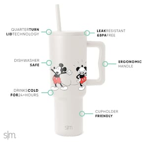 Simple Modern Disney Copo de 1,134 g com alça e tampa de canudo | Garrafa de água reutilizável isolada de aço inoxidável caneca de viagem | Presentes para mulheres e homens Ele Ela | Coleção Trek | - Compatível com porta-copos: forma afunilada com alça torna o copo ideal - leve-nos com você aonde quer que você vá - Resistente a vazamentos: Vem com tampa de canudo para evitar derramamentos - Isolamento de parede dupla: mantém as bebidas quentes ou frias por horas - Durável: Feito de aço inoxidável 18/8 premium - Garantia vitalícia limitada e patente pendente