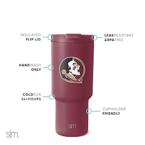 Simple Modern Copo oficialmente licenciado Collegiate Florida State Seminoles 890 g com tampa dobrável e canudos | Copo isolado de aço inoxidável | Presentes para homens | Coleção Trek | Florida State University - Oficialmente licenciado: o presente perfeito dos Seminoles do Estado da Flórida! - Compatível com porta-copos – O formato afunilado torna o copo ideal – leve-nos com você aonde quer que você vá - À prova de vazamento: oferece uma tampa flip de vedação apertada. Vem com dois canudos - Isolamento de parede dupla: mantém as bebidas quentes ou frias por horas - Garantia vitalícia limitada e patente pendente