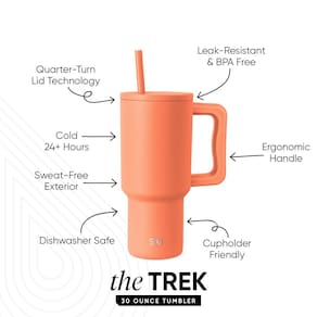 Copo Trek simples e moderno de 30 onças com alça e tampa de canudo | Caneca de viagem isolada de aço inoxidável compatível com porta-copos | Clementina