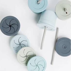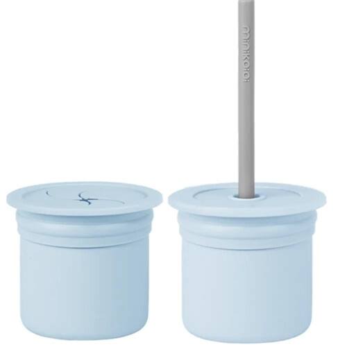 Copo Snack com Canudo Silicone Sip + Snack Blue e Grey - Minikoioi
