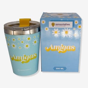 Depois de um dia cheio de aventuras com a sua amiga, precisa de um copo que te ajude a derrotar a sede A gente te ajuda Esse copo é para você é muito compacto, cabe em qualquer cantinho da bolsa ou da mochila Agora você não tem mais desculpas para justificar o cafezinho geladoO produto é , com detalhes incríveis que vão fazer você se apaixonar É uma excelente companhia para o trabalho ou faculdade, feito em aço inoxidável, possui parede dupla o que ajuda a manter a temperatura da sua bebida por muito mais tempo Com uma tampa rosqueável e com 300ml de capacidade para nunca te deixar na mão nas suas aventurasEspecificações:Altura: 11cm Largura: 8cm Comprimento: 8cm Material: Aço Inoxidável e Plástico Capacidade: 300ml BPA: LivreCuidados e recomendações de uso:Não preencha com líquidos até a superfície, deixe pelo menos 1,5cm de espaço para poder fechar o copo.Choques ou quedas podem trincar ou quebrar o produto.Não é a prova de pequenos vazamentos, carregue o produto apenas na posição vertical e não coloque em bolsas ou mochilas.Lavar com água, esponja macia e sabão neutro.Não recomendado colocar no freezer.Não vai á lava-louças, nem ao micro-ondas.Não utilizar produtos químicos e abrasivos.
