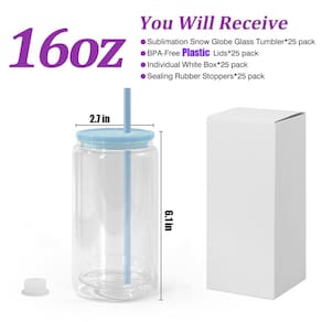 - ?Você receberá?: O conjunto inclui 25 pacotes de 473 ml de vidro de parede dupla de sublimação, 25 pacotes de canudo de plástico sem BPA, 25 pacotes de rolhas e 25 pacotes de tampas de plástico. Cada copo de vidro de parede dupla de sublimação é enviado em uma caixa individual, conveniente para você dar os copos de globo de neve acabados como presentes para seus amigos!