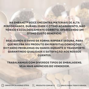 O Copo Bolha Com Tampa S/ Furo 150Ml Pote Felicidade Luxo 50U é produzido pela marca EMBANET, uma referência em embalagens de alta qualidade no Brasil. Todos os produtos da EMBANET passam por análises rigorosas para garantir o padrão e a excelência, proporcionando aos clientes produtos duráveis e de ótimo acabamento. Além disso, a EMBANET é uma marca 100% brasileira, o que garante a qualidade e a procedência dos produtos.