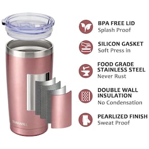 Aço inoxidável isolado o copo Sunwill 20oz é com tecnologia de vácuo de parede dupla para manter as bebidas quentes por mais de 6 horas e frias por cerca de 24 horas. Material Premium O copo é feito de aço inoxidável 18, 8 304 de alta qualidade. Sem grafite e durável. À prova de ferrugem, lavagem fácil e inquebrável. Acabamento perolizado superior à prova de suor, fácil aderência, a tecnologia avançada evita a transferência de calor para a parede externa, livre de condensação e de longa duração. O interior eletropolido proporciona um visual elegante. Projetado para porta copos de carro Marca: Não Informado