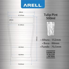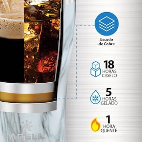 Copo Térmico Arell Com Isolamento A Vácuo Tulip Pint De 500Ml Carrara Marble TECNOLOGIA Os copos térmicos Arell são feitos com parede dupla de aço inox 304 usando a tecnologia de isolamento a vácuo. Isso significa que o espaço entre as paredes de aço inoxidável é absolutamente vazio, diminuindo a transferência de calor em torno de todo o copo. Isso faz com que a temperatura da sua bebida seja muito menos afetada pela temperatura fora do copo. Assim, você pode aproveitar a sua bebida gelada ou quente por muito mais tempo. - Até 18 horas com gelo- Até 5 horas gelado- Até 1 hora quente ESCUDO DE COBRE Os copos Arell contam também como uma camada extra de isolamento térmico. Eles possuem um revestimento de cobre na parede exterior da parte interna formando um isolamento ainda maior. O cobre reduz a troca de temperatura e isso faz com que nossos copos tenham uma eficiência de até 25% a mais do que qualquer outra marca do mercado. FUNDO EMBORRACHADO ANTI-RUÍDO Os nossos copos vem com uma proteção de silicone no fundo que é livre de BPA, diminui o ruído ao assentar o copo e o deslizamento em superfícies planas evitando quedas. TULIP PINT DESIGN Com o pé mais fino e a boca mais aberta, nossa Tulip Pint ajuda na formação e retenção de espuma. Um clássico para tomar Pilsen, dirige os aromas de lúpulo direto para o nariz. Ficha técnica: - Marca: Arell- Linha: Drinkware- Modelo: ARE-DW01-06- Cor: Carrara Marble- Capacidade: 500ml- Altura: 152mm- Boca: 88mm- Fundo: 70,5mm- Garantia Vitalícia Limitada