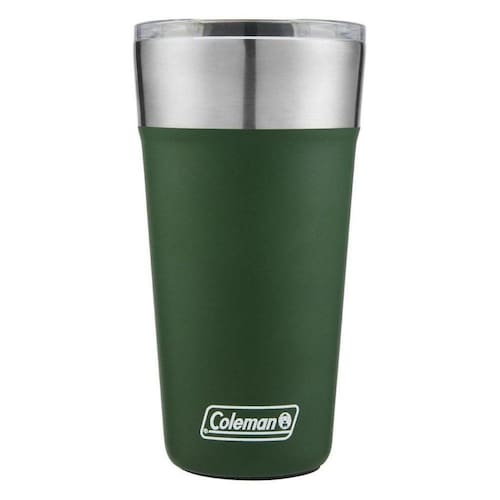 Copo Térmico de Cerveja Coleman 590 ml Verde com Abridor de Garrafas. O aço inoxidável com parede dupla e isolamento a vácuo mantém o gelo por até 15 horas. A tampa de plástico transparente sem BPA possui uma tampa deslizante para evitar sujeira e germes. À prova de condensação, para que você possa sempre ter uma boa aderência.
