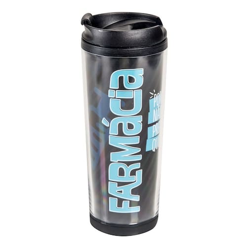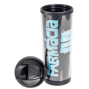 Material: Plástico PS. Dimensões: 6,5 cm x 6,5 cm x 19 cm. Volume: 350 ml. Contém: 1 copo e 1 tampa.
