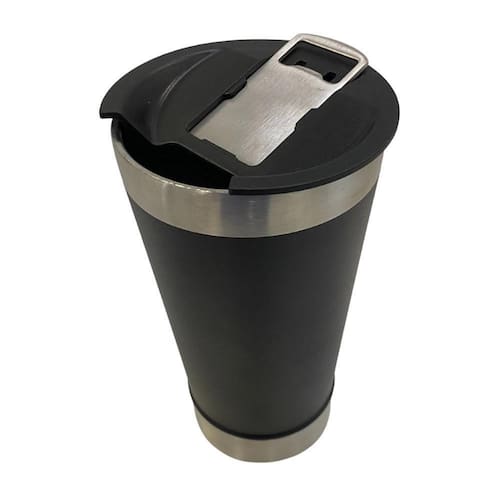 Copo Térmico Com Tampa E Abridor Preto 473Ml Cerveja