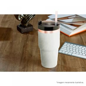 1 Copo Térmico de Aço Inox Parede Dupla SlimTerm com Base Ergonômica e Canudo 590ml Branco 29571 - Wolff