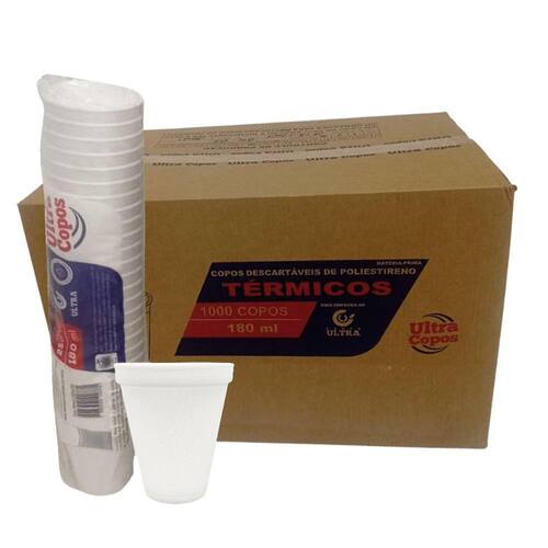 Copo termico de isopor 180ml com 1000 descartavel ultratherm Copo termico de isopor 180ml com 1000 descartavel ultratherm Copo térmico 180ml caixa com 1000 unidades - ultratherm Conservam a temperatura. Ideais para uso em empresas e residencias. Todos os nossos produtos são fabricados com matérias primas aprovadas pela fda food and drug administration para contato direto com o alimentos. Todos nossos produtos são 100% recicláveis, bem como a embalagem que é de papelão 100% reciclado 80% pós consumo . Material: poliestireno espumado eps . Produtos 100% higiênicos e resistentes. Sua textura compacta evita a infiltração e acúmulo de bactérias. Material não apropriado para temperaturas de ebulição. Capacidade: 180 ml Cor: branco Peso 1.5 kg Marca: Ultratherm