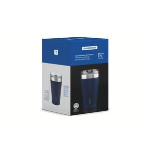 Copo Térmico Exata em Aço Inox Azul com Tampa 550 ml Tramontina - Especificações TécnicasOs copos Térmicos inox Tramontina são feitos em parede dupla de aço inox com isolamento a vácuo para manter as bebidas frias ou quentes por mais tempo.