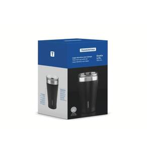 Copo Térmico Exata em Aço Inox Preto com Tampa 550 ml Tramontina - Especificações TécnicasOs copos Térmicos inox Tramontina são feitos em parede dupla de aço inox com isolamento a vácuo para manter as bebidas frias ou quentes por mais tempo.
