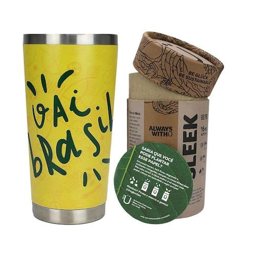 O copo térmico sleek future brasil vai brasil em aço inox 473ml suporta 4h gelado é extremamente resistente, prático e de altíssima qualidade. O principal diferencial do copo térmico sleek 473ml glck é o seu design aliado a uma excelente capacidade térmica. Ele mantém sua bebida quente por até 45 minutos e gelada por até 4 horas.Copo térmico gluck sleek future brasil vai brasil em aço inox 473ml suporta 4h gelado o copo térmico sleek future brasil vai brasil em aço inox 473ml suporta 4h gelado é extremamente resistente, prático e de altíssima qualidade.O principal diferencial do copo térmico sleek 473ml glck é o seu design aliado a uma excelente capacidade térmica. Ele mantém sua bebida quente por até 45 minutos e gelada por até 4 horas. Se você utilizar gelo, vai manter por até 7 horas. E mais uma novidade, agora junto à embalagem foi incorporado um disco de papel semente biodegradável, que poderá ser plantado e em pouco tempo você terá flores alegrando seu ambiente, margarida, clarquia ou cravo descubra. É só rasgar o disco que acompanha o copo, colocar em terra fértil e regar sempre com capacidade de 473ml, ele é perfeito para cerveja, chopp, água, café ou qualquer outra bebida que você quiser sempre com você, quente ou gelada.Esse modelo tem design diferenciado, com inspiração escandinava e traços arrojados. Um lindo copo que combina com todos os seus melhores momentos, seja no trabalho, no churrasco, em festas, na academia, de manhã ou à noite, o glck vai estar com você.Outro ponto muito importante é a sua composição, é a construção em aço inox com parede dupla de isolamento. Essa é a tecnologia que proporciona a capacidade térmica do seu copo.Além de tudo, ele é livre de bpa. O bpa  bisfenol a  é uma substância química presente na maioria dos plásticos e polímeros, e é comprovadamente nociva à saúde. Por isso, escolha um copo que se preocupe com a sua saúde e bem-estar.Pra cuidar do seu copo glck e mantê-lo sempre novinho em folha, lave somente com água e sabão e não utilize produtos químicos abrasivos.Se você procura por uma marca que faça a diferença, por um acessório feito pra durar uma vida, por qualidade, praticidade e durabilidade, por alegria e bons momentos, pode parar de procurar, é só apostar na glck.A glck nasceu nos estados unidos. Lá, a utilização desse tipo de copo seja no trabalho, em viagens ou mesmo para lazer é muito valorizada, tanto pela praticidade e qualidade que proporciona quanto pela diminuição de resíduos plásticos na natureza.A marca preza por enaltecer os bons momentos, sejam eles quais forem. O lema é be glck. Ser glck não se limita a ter ou usar os produtos, mas sim ter personalidade, ser diverso, múltiplo e ter a consciência de escolher uma marca que se preocupa com o impacto ambiental e com o planeta. Especificações técnicas:marca: glckmodelo: copo térmico sleek capacidade: 473mlmaterial: aço inox 304- parede dupla com isolamento á vácuo- empilhamento infinito- parte externa não suatérmica quente: 45mintérmica fria: até 4hgelo: até 15hlivre de bpadimensões do produto  axcxl : 14,6 x 8,7 x 8,7cmpeso: 190g