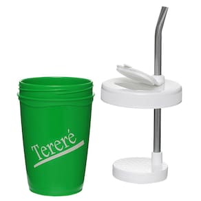 Copo para tereré Rodeo West fabricado em plástico. Possui um sistema diferenciado onde a bomba fica no fundo do copo e a tampa possui abertura para colocação da água e da erva, tornando o uso mais prático. A base da bomba pode ser aberta para limpeza total.