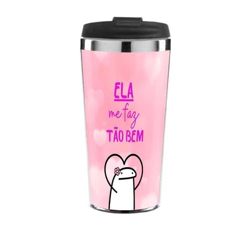Copo Térmico Personalizado Tema Namorados - Ela me faz tão bem Copo Térmico Personalizado Tema Namorados - Ela me faz tão bem. Um lindo copo para você presentear sua namorada. Afinal, demonstrar seu carinho e amor não tem preço. Ela me faz tão bem, que eu também quero fazer isso por ela. Com Meme do Flork, tem como não amarÓtima opção para o dia dos namorados e aniverário. Obs: Essa compra garante milhões de beijos do seu amor, você não vai deixar passar batido né Resistente e durável é o copo perfeito para degustar aquela bebida especial. Além de manter sua bebida gelada por até 2 horas ou 1 hora quente, sua parede dupla faz com que a sua bebida fique conservada por mais tempo. A compra do Copo Térmico Personalizado Inox 450ml é indicada para quem gosta de ter a sua bebida preferida sempre na temperatura desejada e em alto estilo. DescriçãoPeso: 250g Altura: 17cm Largura: 9.5 cm Comprimento: 8 cm Capacidade: 450 Ml Material: inox / AcrílicoEspecificaçõesAço inoxidável 90% livre de BPA Isolamento à pressão de parede dupla Certificados: FDA / BPA Free / Supplier Assessment. Impressão em alta qualidade Tampa de roquear e abre e Fecha Trava de segurança de abre e fecha.