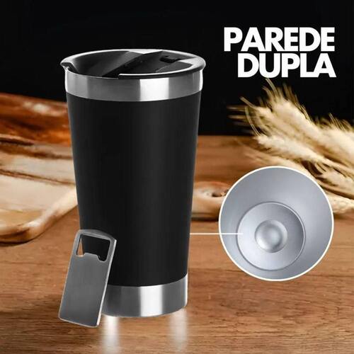 A tampa do copo foi projetada para facilitar a abertura de garrafas, possuindo um abridor embutido. Essa funcionalidade adiciona praticidade ao seu uso diário, permitindo abrir suas bebidas com mais facilidade.