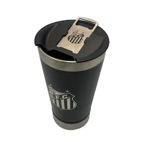 Um copo para a torcida Santista assistir e torce para o Peixão ela é feita de inox com tampa plástica e abridor em inox. Uma ótima dica para presentear aquele seu amigo Santista.