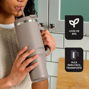 Copo Térmico Streeterville Inkycap Contigo | 1,18l O Copo Térmico Streeterville 1,18L Contigo combina design moderno com funcionalidade avançada, sendo a escolha ideal para quem está sempre em movimento. Com isolamento a vácuo de parede dupla em aço inoxidável, ele mantém suas bebidas geladas por até 29 horas, proporcionando refrescância duradoura mesmo nos dias mais quentes. Este copo foi projetado para oferecer conveniência sem comprometer o estilo, com uma alça prática e compatibilidade com a maioria dos porta copos de carro. Além disso, sua tampa multifuncional Flip Top permite escolher entre beber com ou sem canudo, de acordo com a sua preferência. Destaques que fazem a diferençaÀ prova de vazamentos: A tampa Flip Top multifuncional garante e tranquilidade, permitindo que você carregue seu copo sem o risco de do seu jeito: Com a opção de usar canudo ou beber diretamente, o Copo Térmico Streeterville se adapta às suas duração térmica: Mantém suas bebidas geladas por até 29 horas, graças ao isolamento a vácuo de parede dupla em aço inoxidáátil e : O design com alça ergonômica facilita o , enquanto o copo é com a maioria dos porta copos de ácil de limpar: Todas as partes do copo, incluindo o canudo, são removíveis para uma higienização completa. A tampa é lavável na parte superior da lava louças, e o corpo pode ser lavado à mão. e sustentabilidade: Fabricado com materiais livres de BPA, o copo oferece para você e sua família. Conserva por mais tempoBebidas frias por até 29 horas Garantia12 meses Capacidade1,18L Conteúdo da embalagem1 Copo Térmico Streeterville Inkycap Contigo | 1,18L1 Manual A Contigo oferece o equilíbrio perfeito entre estilo atemporal e tecnologia de ponta com o Copo Térmico Streeterville. Garanta sua hidratação sem abrir mão da praticidade e elegância. Material - Inox Garantia - 12 Meses Capacidade - 1,18 litros Cor Predominante - Marrom Isolamento Térmico - Parede dupla (inox) com isolamento a vácuo Modelo - Contigo Linha - Streeterville BPA Free - Sim Tipo de utilização - Copo Nome Simplificado - Copo Streeterville Marrom Conservação Térmica Frio - 29h
