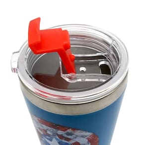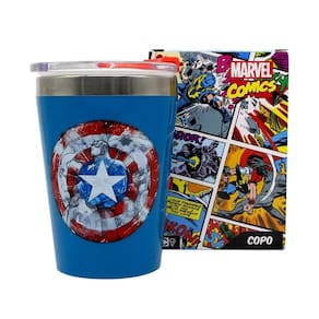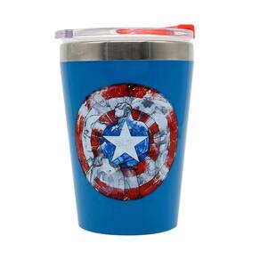 Copo Viagem snap Capitão América. O copo possui parede dupla o que ajuda a manter a temperatura da sua bebida por muito mais tempo! Com uma tampa de rosca e com 300 ml de capacidade para nunca te deixar na mão! Ótima opção para presentear aquele best friend! Medidas 11 x 8 cm (A x D). Peso: 145 g. Cuidados e recomendações de uso: Lavar com água, esponja macia e sabão neutro. Não recomendado colocar no freezer. Não vai á lava louças, nem ao micro-ondas. Não utilizar produtos químicos e abrasivos.