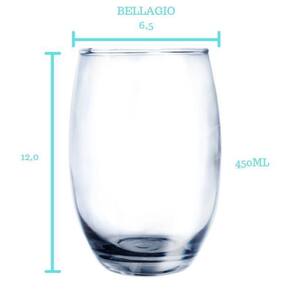 Copo Vidro 450ml (Suco, água) BELLAGIO kit com 18 Transp. 18 Copos de Vidro Bellagio 450ml
