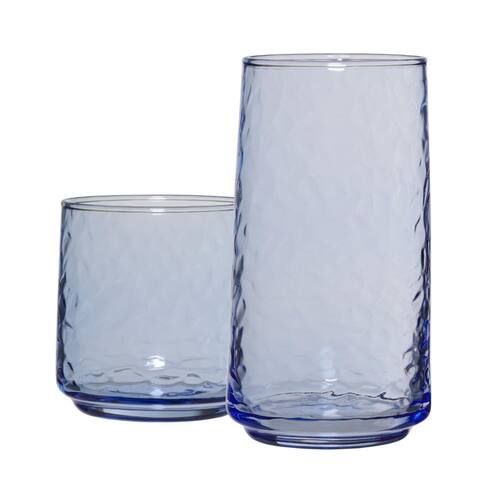 — INCLUI: Este conjunto de copos contém (8) copos de rock de 12 onças e (8) copos de chá de 18 onças. Feito de vidro azul durável com textura martelada.