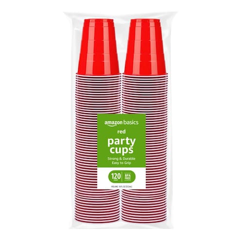 Amazon Basics Copos de festa de plástico descartáveis, vermelho, 510 g, 120 unidades, pacote grande