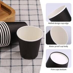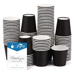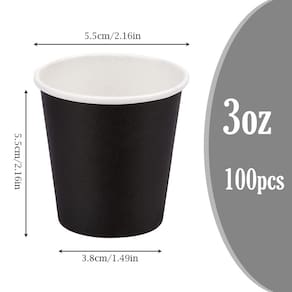- 100 peças no total: pequenos copos de papel pretos podem conter 3 onças. Eles estão disponíveis em pacotes convenientes de 100, um grande número é mais acessível e bonito. Os pequenos copos de papel preto de 3 onças são perfeitos para copos de banheiro, copos experimentais de supermercado, copos de lanche para festa de aniversário e assim por diante.