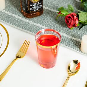 - Aparência elegante: os copos de plástico com borda dourada oferecem a você a combinação com qualquer cor das bebidas ou sobremesas para trazer ao seu arranjo de mesa uma sensação de requinte, proporcionando à sua festa uma sensação de elegância e luxo