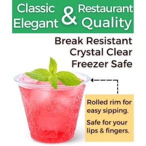 Qualidade de restaurante, super resistente e durável: o material PET atualizado torna esses pequenos copos de plástico mais duráveis e resistentes. Em comparação com os copos de plástico rígido, os copos PET são resistentes a rachaduras e a borda enrolada é segura para seus lábios e dedos. Claro como cristal, livre de BPA, sem odor, seguro para congelador.