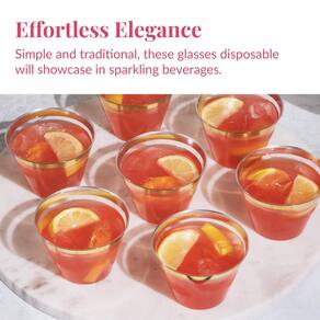 - Para uma variedade de bebidas: cada copo de festa pode conter várias bebidas, incluindo, entre outros, vinho, champanhe, refrigerante, água, suco, cerveja, licor, bebidas mistas, ponche e chás. Além disso, perfeita para pequenas sobremesas.
