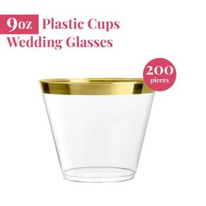 Copos rígidos descartáveis | Copos de vinho de plástico | Copos de coquetel de plástico | Copos de plástico | Copos de festa a granel | Copos de casamento | Copos transparentes (200 ct - Ouro (255 g))