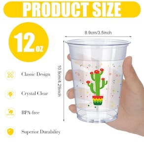 Características: O pacote inclui 100 xícaras para uma festa, o suficiente para suas necessidades de preparação de festas ou necessidades de uso dos convidados. O design padrão desses copos de plástico de festa é bom para festas temáticas mexicanas e pode criar uma atmosfera forte para a festa. Especificações: Material: plástico PET Cor: como mostrado na imagem. Tamanho: 12 oz/354,84 ml A embalagem inclui: 100 copos Fiesta Observações: Medição manual, considere pequenos erros no tamanho. A cor pode existir uma ligeira diferença devido a diferentes ecrãs. - Quantidade suficiente: você receberá 100 copos descartáveis de plástico com tema mexicano, incluindo 4 padrões de chapéu de palha, cacto, guitarras e torta, 25 xícaras de cada padrão, o que adicionará uma atmosfera alegre à sua festa - Material de qualidade: estes copos de plástico infantis são feitos de plástico PET de qualidade, que é muito resistente e não quebra ou deforma facilmente, para que toda a festa possa ser realizada com confiança - Conveniente e prático: estes copos de plástico para crianças são leves, para que você possa levá-los com você para qualquer lugar, o que é bom para piqueniques, camping, viagens ou outras atividades ao ar livre; Além disso, como eles são descartáveis, você pode simplesmente jogá-los fora após o uso, economizando muito tempo de limpeza - Grande capacidade: estas xícaras de festa têm capacidade para 355 ml e podem conter suas bebidas favoritas, como coquetéis, limonada, refrigerante, suco, café, vinho ou outras bebidas - Ampla aplicação: estes copos mexicanos são adequados para muitas ocasiões, seja uma festa de aniversário, uma despedida de solteiro ou uma festa temática mexicana, nossos copos descartáveis são ideais para a preparação da sua festa e fazem você ter memórias inesquecíveis