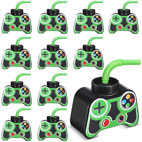 Características: Traga diversão para festas: pode usar estes copos de aniversário gamer com canudo para decorar sua cozinha, sala de estar, estação de bebidas ou escritório e outros materiais de festa, como pratos, guardanapos, balões, etc., tornando esses lugares mais bonitos e adoráveis. À prova de derramamento e prático: O copo de festa para jogos tem tampas, o que pode efetivamente evitar que as bebidas dentro derramem. Além disso, o copo de plástico com tema de jogos é muito leve para que seja conveniente para você carregar, especialmente quando você vai às compras ou vai a uma festa. Especificações: Material: plástico Cor: como mostra a imagem. Tamanho: aprox. 8,6 x 5,6 x 11,9 cm. Capacidade: aprox. 283 g A embalagem inclui: 12 copos de festa para jogos. 12 canudos. Observações: Observe que não é recomendado usar lava-louças Medição manual, permita pequenos erros no tamanho. A cor pode existir uma pequena diferença devido a diferentes exibições de tela. Lave com água antes de usar. Mantenha longe de pessoas com menos de 6 anos de idade. - Design em forma de gamepad: nossas taças gamer para lembrancinhas de festa são projetadas com padrões temáticos de jogos, incluindo modelagem de controle de jogo, principalmente em vermelho, cinza e preto, cores vivas, cheias de diversão, criando uma atmosfera de jogo forte para sua festa - Ampla quantidade: você receberá 12 peças de copos de videogame cinza com 12 canudos cinza, que é uma boa combinação para lembrancinhas ou presentes de festa de aniversário infantil e adequado para festa de jogos infantis; quantidade suficiente para atender às suas várias necessidades e compartilhar com seus parceiros - Material seguro: os copos de cabo de videogame com canudos são feitos de material plástico, confiáveis, leves, mas resistentes, fáceis de limpar e difíceis de quebrar, que podem ser aplicados repetidamente; Observe que não é recomendado usar lava-louças - Fácil de beber: cada copo de lembrancinha de festa de videogame mede cerca de 8,5 x 5,6 x 11 cm, a capacidade é de cerca de 283 g, vem com um canudo e tampa para facilitar o uso; o canudo tem cerca de 18 cm e é longo o suficiente para alcançar o fundo do copo, o que permite que crianças e adultos terminem facilmente a água ou bebam no copo sem desperdiçar ou derramar - Multiuso: copos de aniversário para jogadores a granel são adequados para lembrancinhas de festa de caminhão de videogame, festa de fãs, aniversário de jogador, subir de nível, jogos para amantes de festas, festas de fim de ano e outras ocasiões; Além disso, eles podem ser aplicados à vida diária