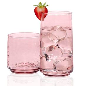 — INCLUI: Este conjunto de copos contém (8) copos de pedras de 12 onças e (8) copos de chá de 18 onças. Feito de vidro rosa durável com textura martelada.