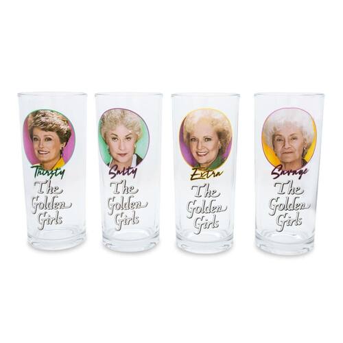 - COLECIONÁVEL OFICIAL DO GOLDEN GIRLS: Comemore o inesquecível e temível quarteto com este conjunto de copos de vidro oficialmente licenciado pela The Golden Girls. Perfeito para tomar uma bebida enquanto você assiste novamente ao seu seriado favorito de todos os tempos.