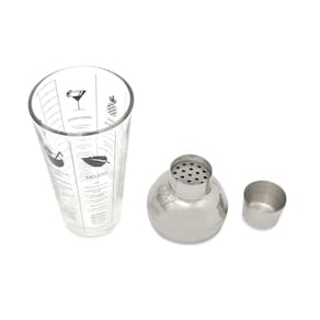 Ideal para a preparação rápida dos mais diversos drinks! É um ótimo acessório para ter em seu bar ou cozinha, possui capacidade para 420ml com tampa, perfeito design com receitas de drinks em sua própria estrutura. Surpreenda seus convidados com deliciosos drinks! Composição: Vidro e Aço InoxCapacidade: 420ml Dimensão: 8,5cm x 8,5cm x 23,5cm (C-L-A)Peso: 460gDimensão da Embalagem: 9cm x 9cm x 19cm (C-L-A)Peso com Embalagem: 521g